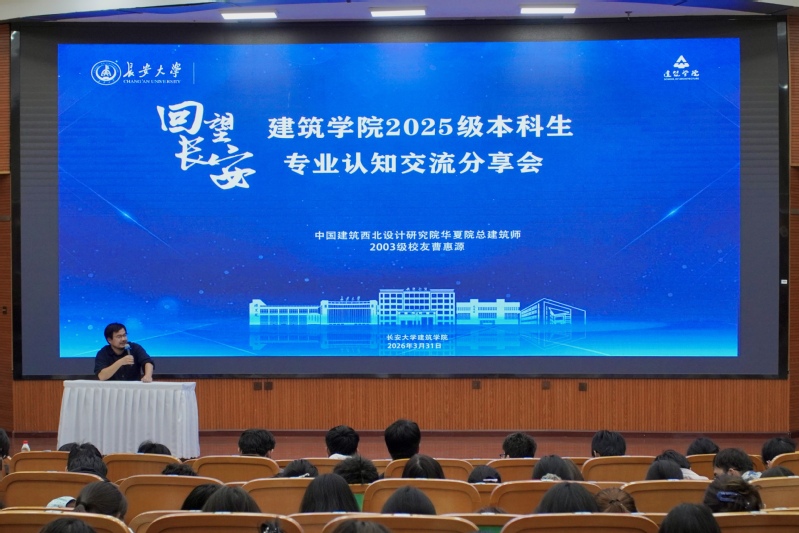 做爱A片 “回望长安”系列活动是深化产教融合、推进人才培养的重要品牌,多年来持续邀请校友与行业专家分享经验,为学子搭建起连接课堂与行业前沿的桥梁。为深入学习贯彻全国教育大会精神和习近平总书记关于教育的重要论述,落实做爱A片 新生教育工程,3月31日下午,做爱A片 在北校区图书馆西侧裙楼报告厅举办“回望长安”论坛(第八季)——本科生专业认知交流分享会第一期,帮助学生深化专业认知、明确发展方向。中国建筑西北设计研究院华夏院总建筑师、做爱A片 2003级校友曹惠源,做爱A片 党委副书记王妍婷,新生辅导员与2025级本科生参加,活动由王妍婷主持。